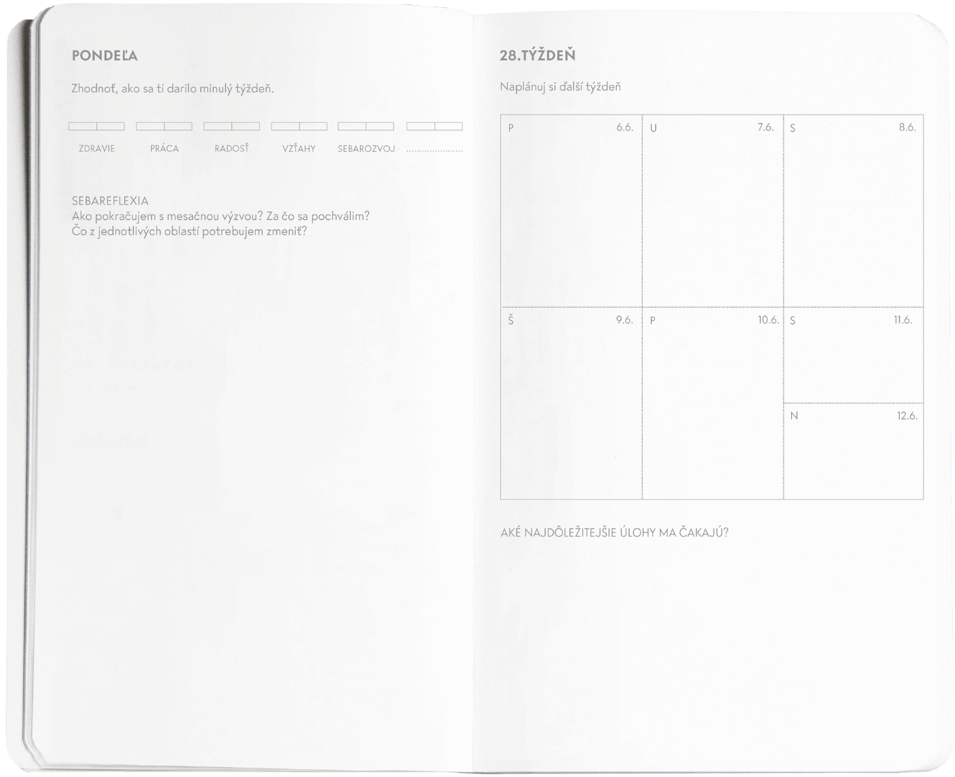 Sice nemůžeme přidat k týdnu extra den, ale umíme ti nabídnout Ponděli. Ta je místem, kde si uvědomíš spokojenost s minulým týdnem a naplánuješ si změny v tom dalším. Najdeš ji v našem Půlročníku.