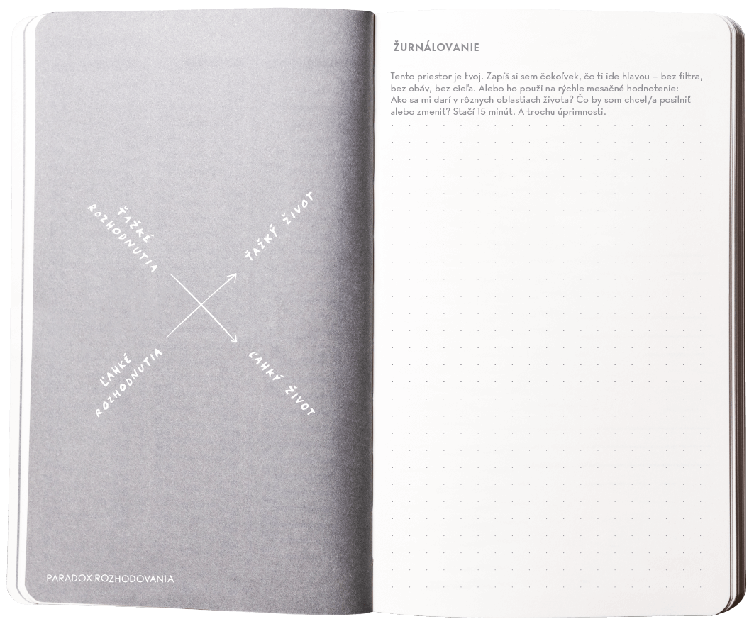 Kromě toho, že je Žurnál kvalitní zápisník na toudečka, jeho síla spočívá zejména ve cvičeních, která ti pomohou s propojením každodenních povinností na tvou dlouhodobou vizi.