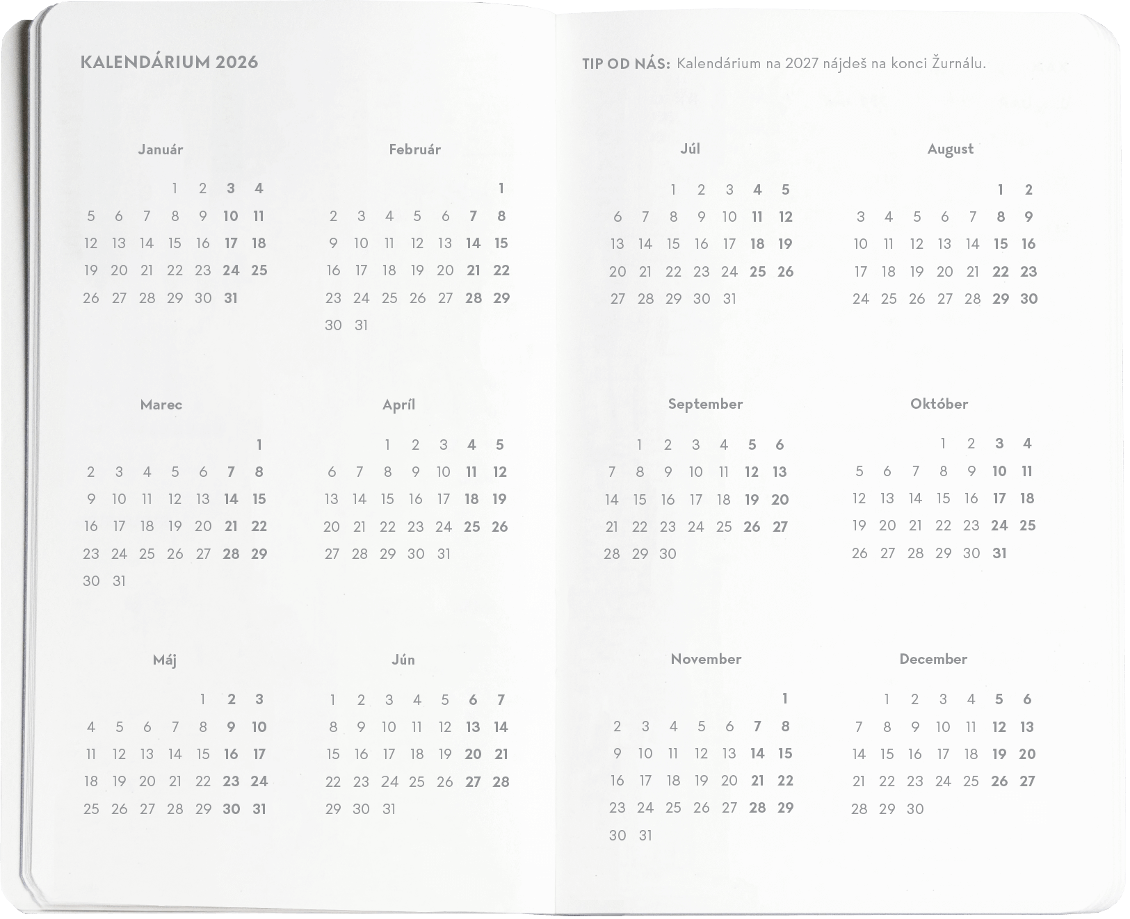 Proč je pluskový ročník naším bestsellerem? Protože levá strana v týdenním layoutu potěší plánovače s tudučkami. Pravá strana zase kreativce s tečkovaným místem na zápisky. Toho najdeš dost iu volných stran na konci. A všem tě provede - jak jinak - Žurnál metoda.